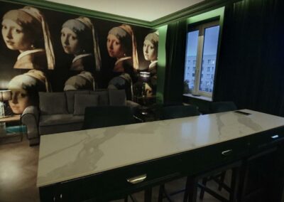 W pełni wyposażony apartament na 5 piętrze z windą- w budynku w ciekawym stylu socrealistycznym z lat 50 XX w. W sąsiedztwie metra M1 Politechnika, zabytkowego Placu Zbawiciela, Placu Konstytucji, Pałacu Kultury i Nauki i Łazinek Królewskich.